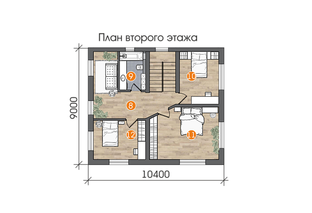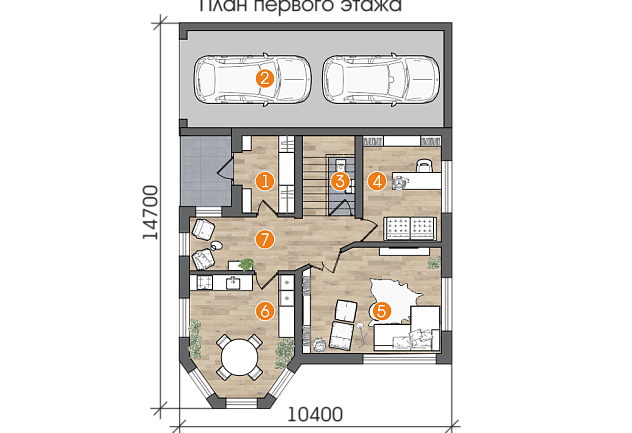Двухэтажный дом, в котором учтены все пожелания большой семьи. На первом этаже расположены большая гостиная и просторная кухня, гостевая комната для припозднившихся гостей. Приватный второй этаж с тремя спальнями и отдельной ванной комнатой. К дому может быть пристроен гараж.